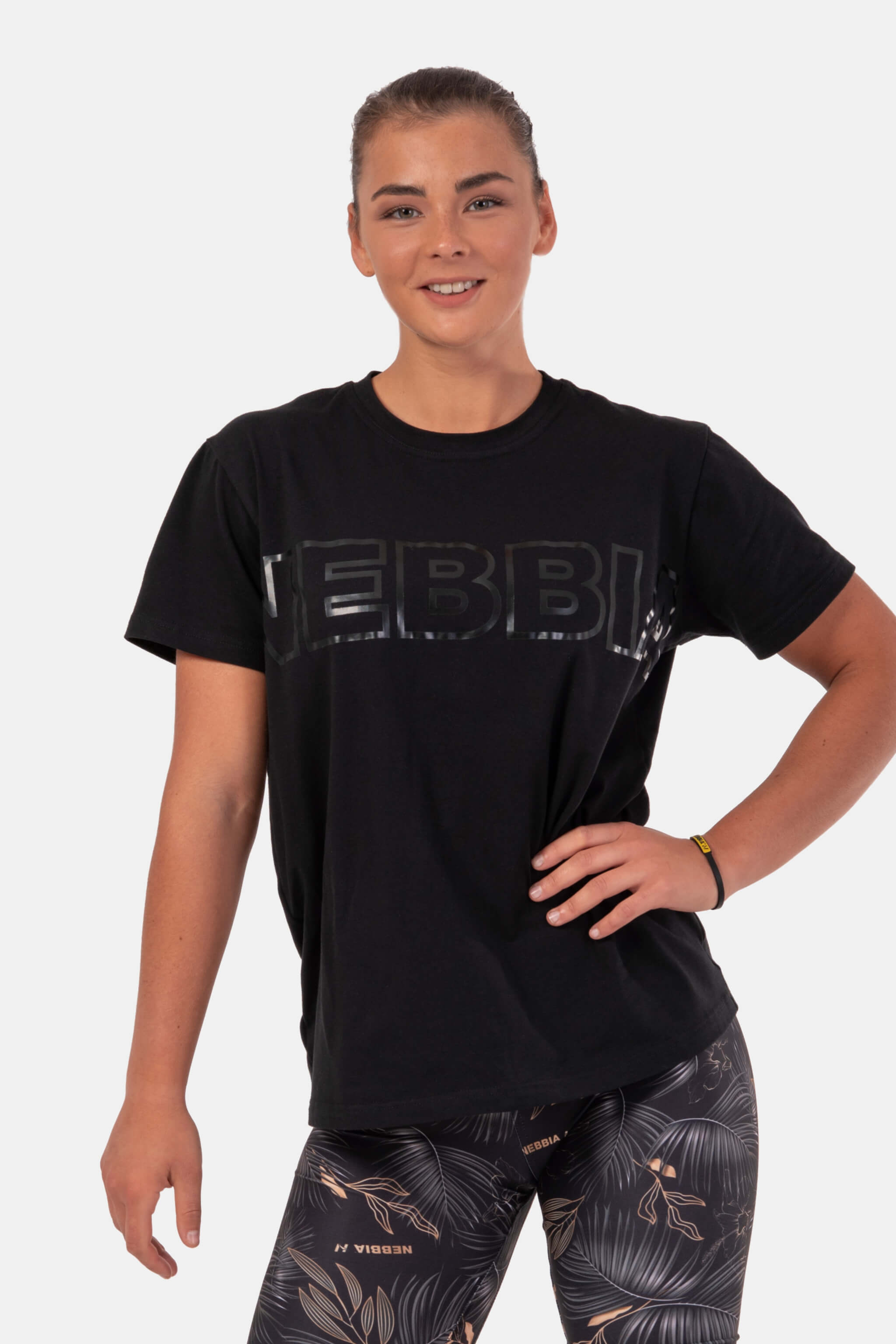 This Invisible Logo T-shirt is a must-have for everyone who loves training and follows a healthy fit lifestyle. We have taken the classic cotton T-shirt to a whole new level. Thanks to added elastane, you will enjoy more flexibility and efficient sweat-wicking properties. The T-shirt is also resistant to abrasion and wrinkling. Do you prefer black or pink? You can easily combine each model with NEBBIA leggings, bubble butt pants or your favorite jeans.